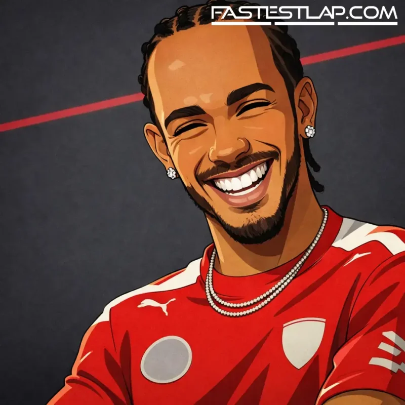 After a few sips, Antonelli’s reaction was immediate: coughing, spluttering, and an X-rated realisation that he’d just been comprehensively outplayed. Hamilton, watching it unfold with the glee of someone no longer responsible for the consequences inside that garage, offered precisely the kind of sympathy you’d expect.